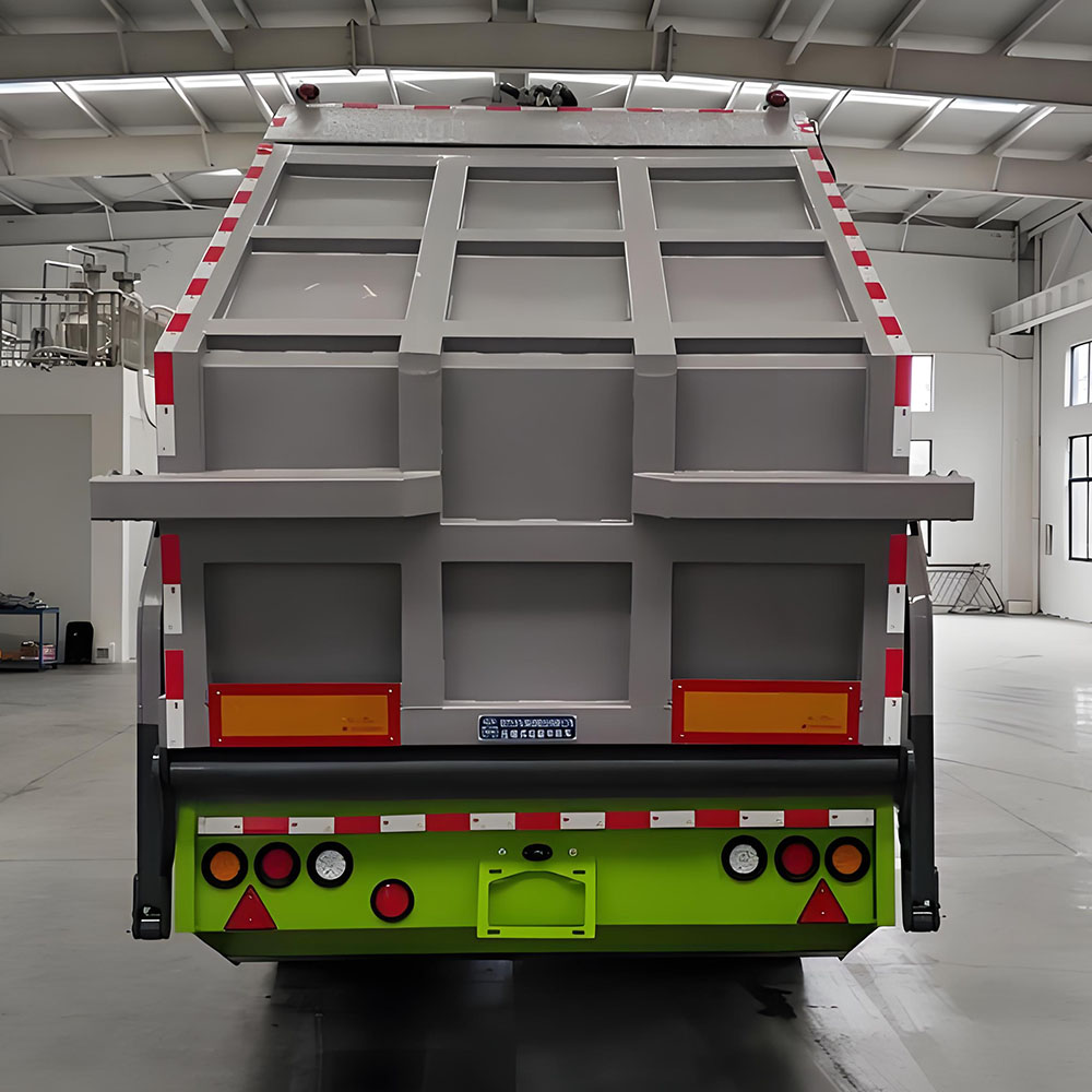 A semirremolque compactador de residuos es un gran camión que hace la basura más pequeña. Ayuda a trasladar la basura de un lugar a otro. Estos camiones pueden contener mucha basura.